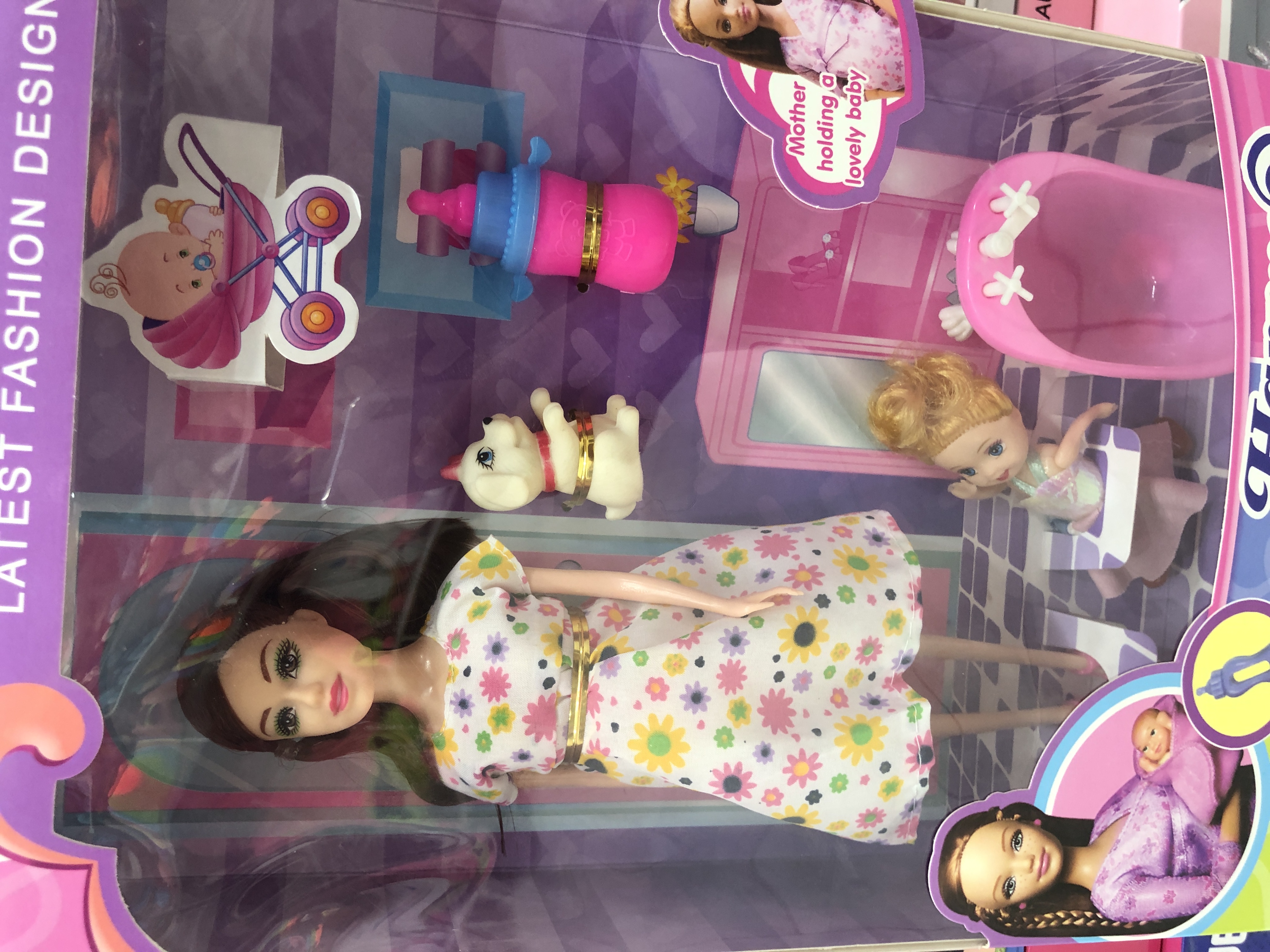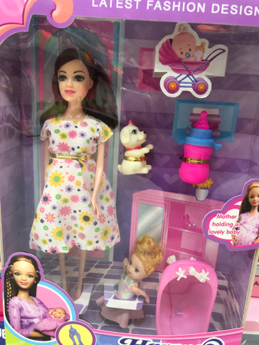 عروسک باربی با بچه شیشه شیر